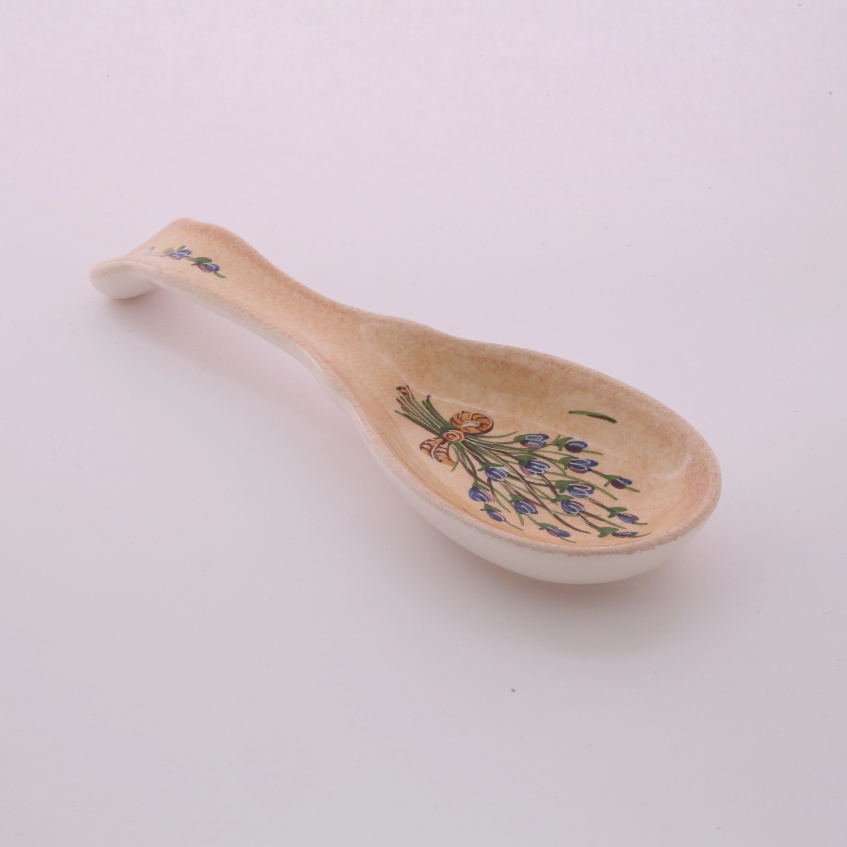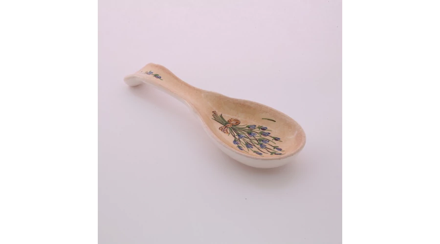 Fekvő kerámia fakanáltartó kanál formájú, kézzel festett levendulás mintával. Hosszúsága 23 cm. Praktikus kiegészítő konyhájába. |