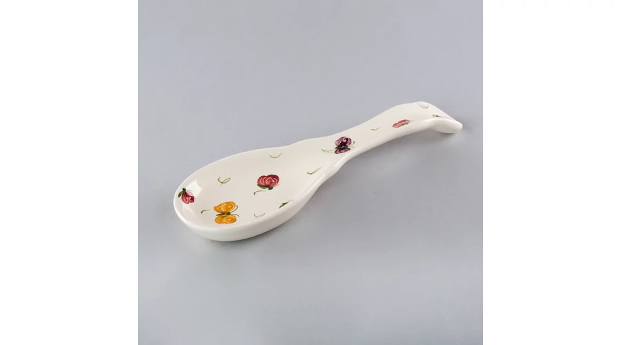 Fekvő kerámia fakanáltartó kanál formájú, kézzel festett pillangós mintával. Hosszúsága 23 cm. Praktikus kiegészítő konyhájába. |