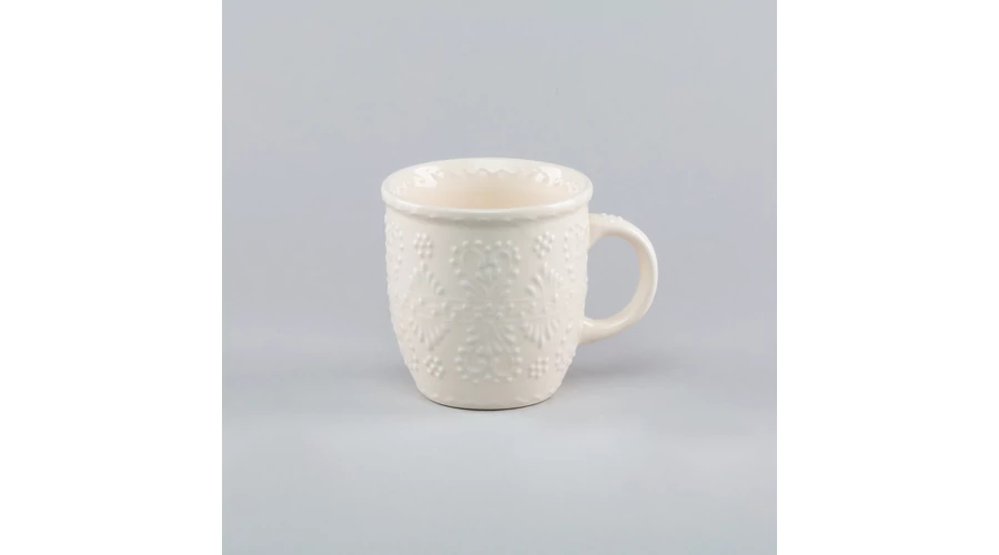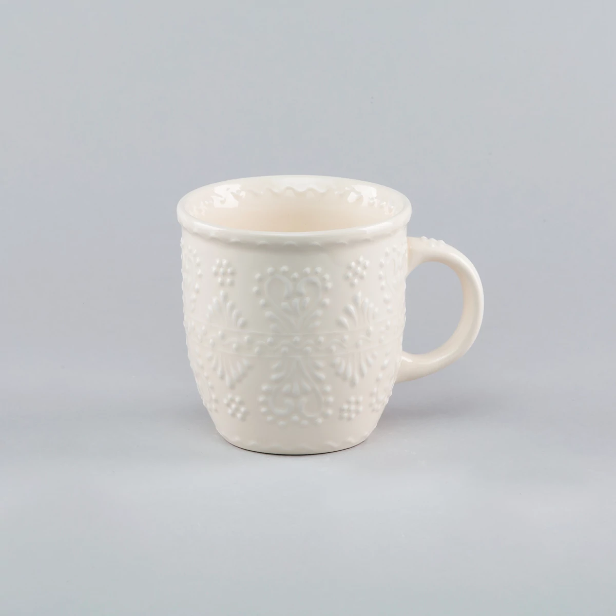 3 dl űrtartalmú kerámia bögre, 9,5 cm magas. Kézzel festett fehér írókás mintával. Mikrohullámú sütőbe tehető, és mosogatógépben tisztítható, mindennapos használatra alkalmas. Készletben remek ajándék születésnapra, vagy nászajándékba. 6 darab felett most kedvezőbb áron! |