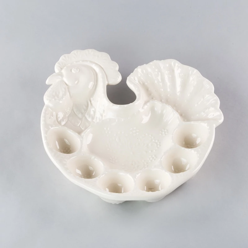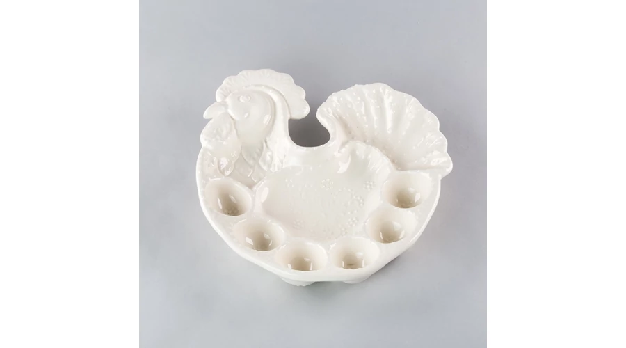 Kézzel festett kakas formájú tálaló kézzel festett fehér írókás mintával, átmérője kb 25 cm. |
