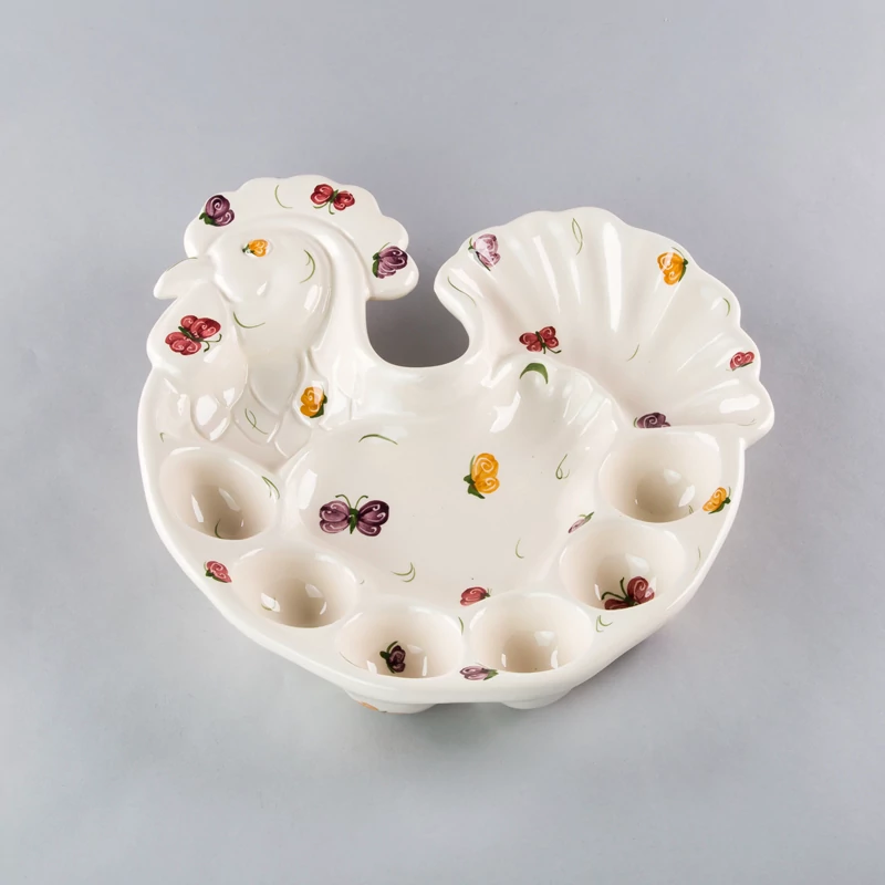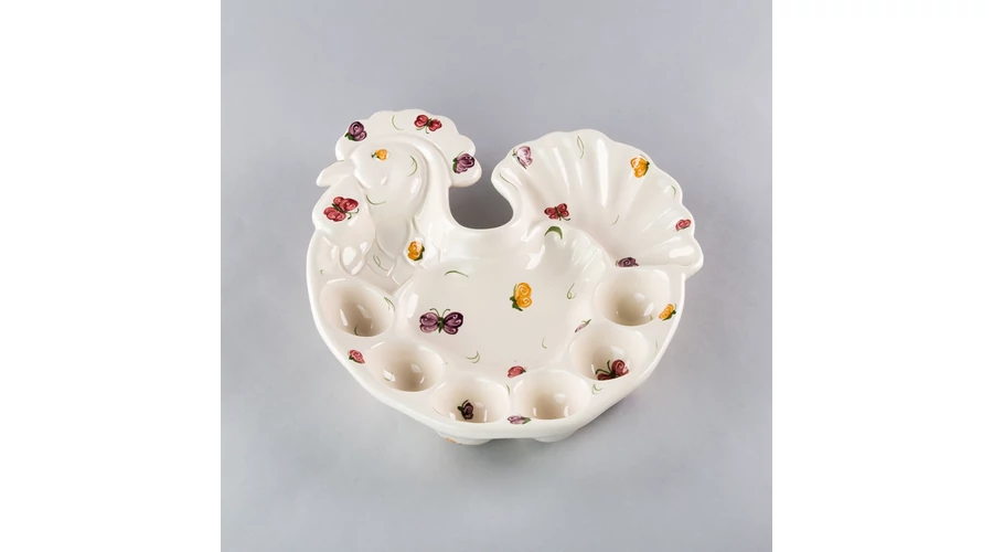 Kézzel festett kakas formájú tálaló pillangós mintával, átmérője kb 25 cm. |