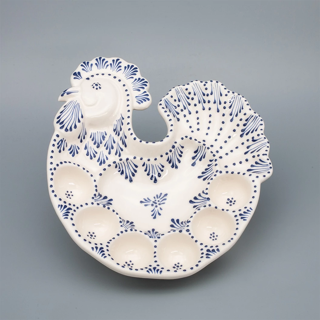 Kézzel festett kakas formájú tálaló írókás mintával, átmérője kb 25 cm. |