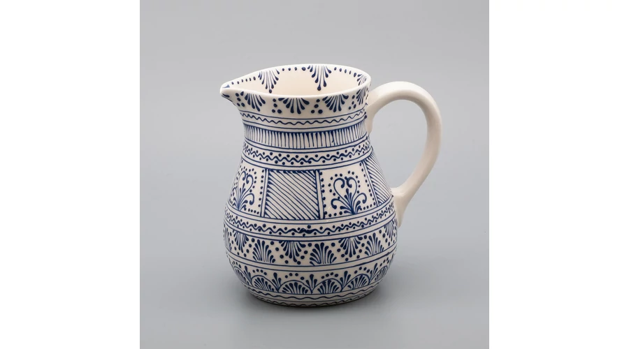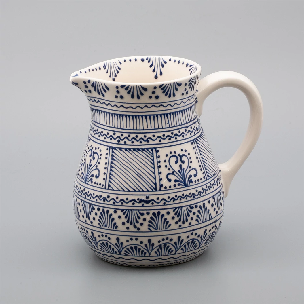 Nagy méretű kerámia kancsó, kézzel festett irókás mintával. Magassága 19 cm, űrtartalom 1,7 liter. Mindennapos használatra alkalmas. Önállóan is kitűnő ajándék szeretteinek |