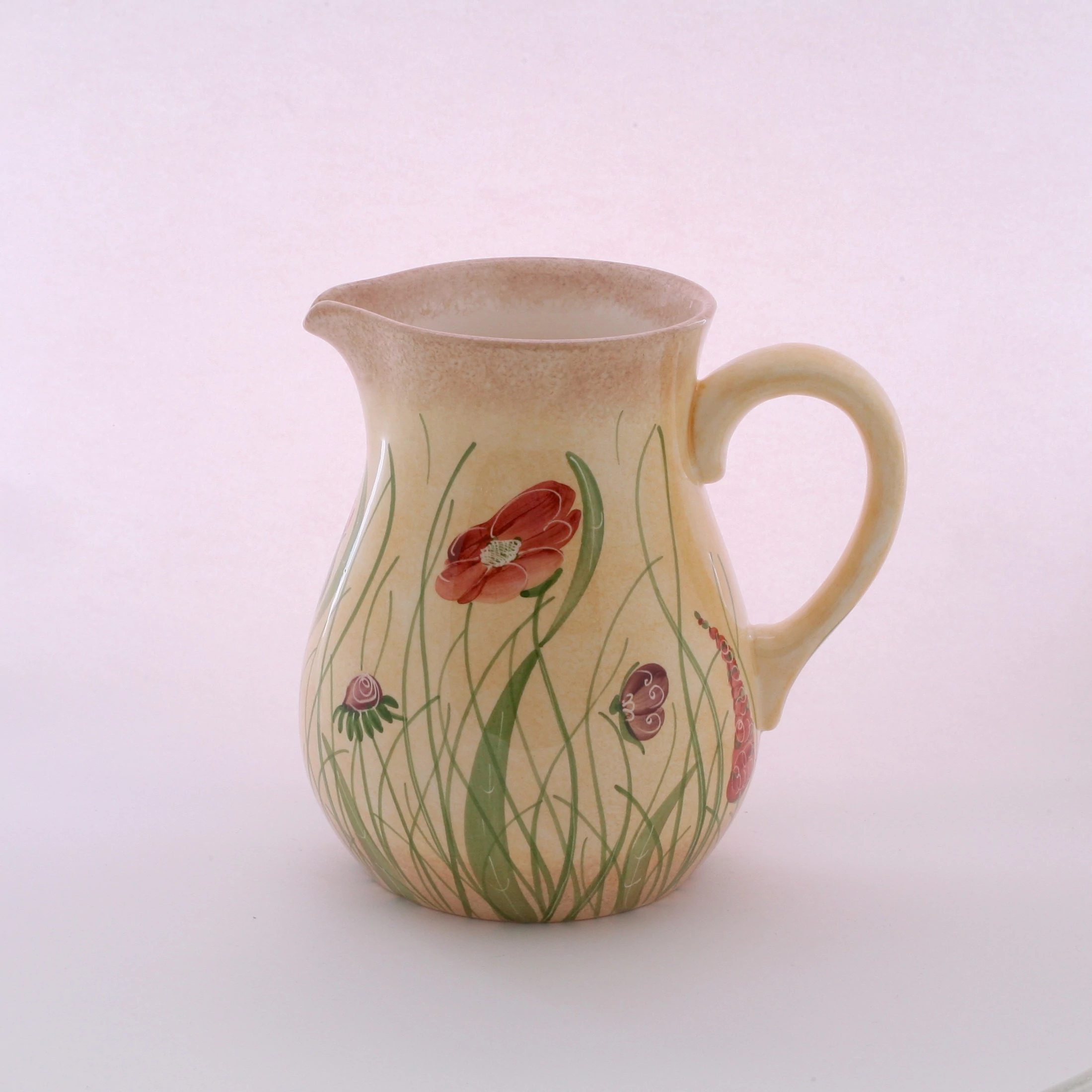 Nagy méretű kerámia kancsó, kézzel festett pipacsos mintával. Magassága 19 cm, űrtartalom 1,7 liter. Mindennapos használatra alkalmas. Önállóan is kitűnő ajándék szeretteinek |