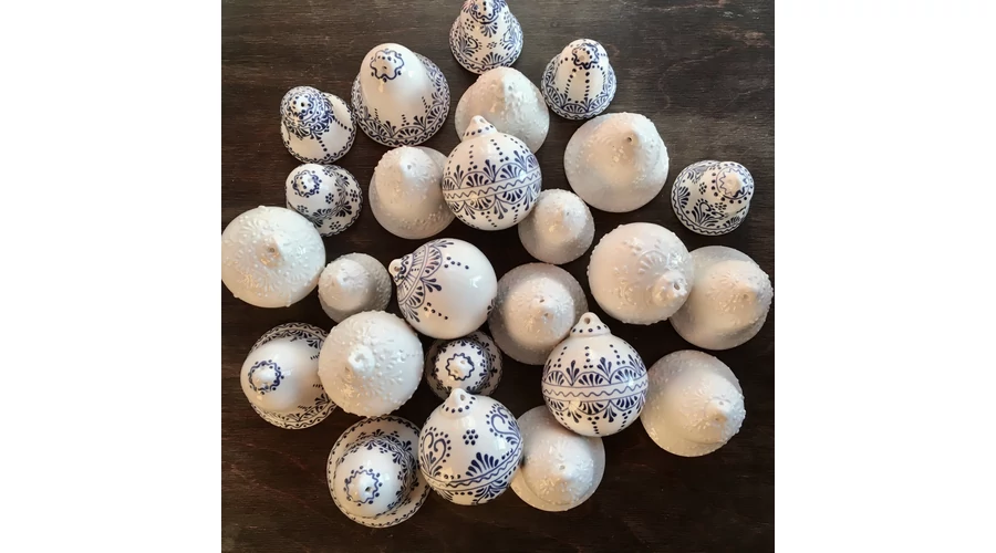 Kézzel festett, egyedi kézműves kerámia gömb alakú karácsonyfadíszek korlátozott ideig elérhetőek kék és fehér színárnyalatban. A gömb alakú dísz átmérője 7 cm. A harang alakú díszeket itt találja: https://www.baranyikeramia.hu/keramia_dekoracio/karacsonyfadisz_harang_alaku_607 |