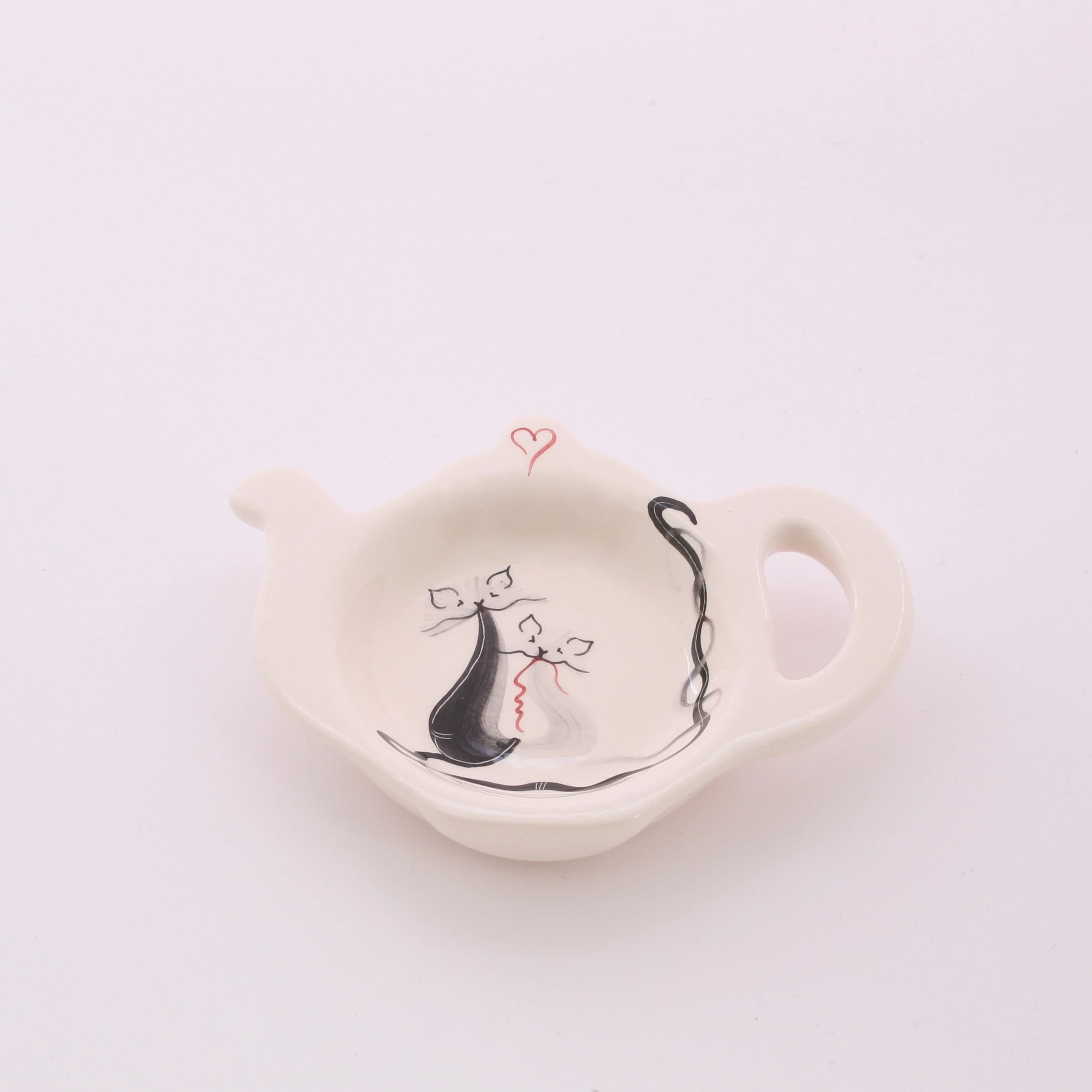 Kerámia teafiltertartó kézzel festett cicás mintával, a kiáztatott teafiltert tesszük bele, miután kivesszük a teából. Mérete 12 cm és 9 cm. Praktikus kiegészítő teáskészletéhez. |