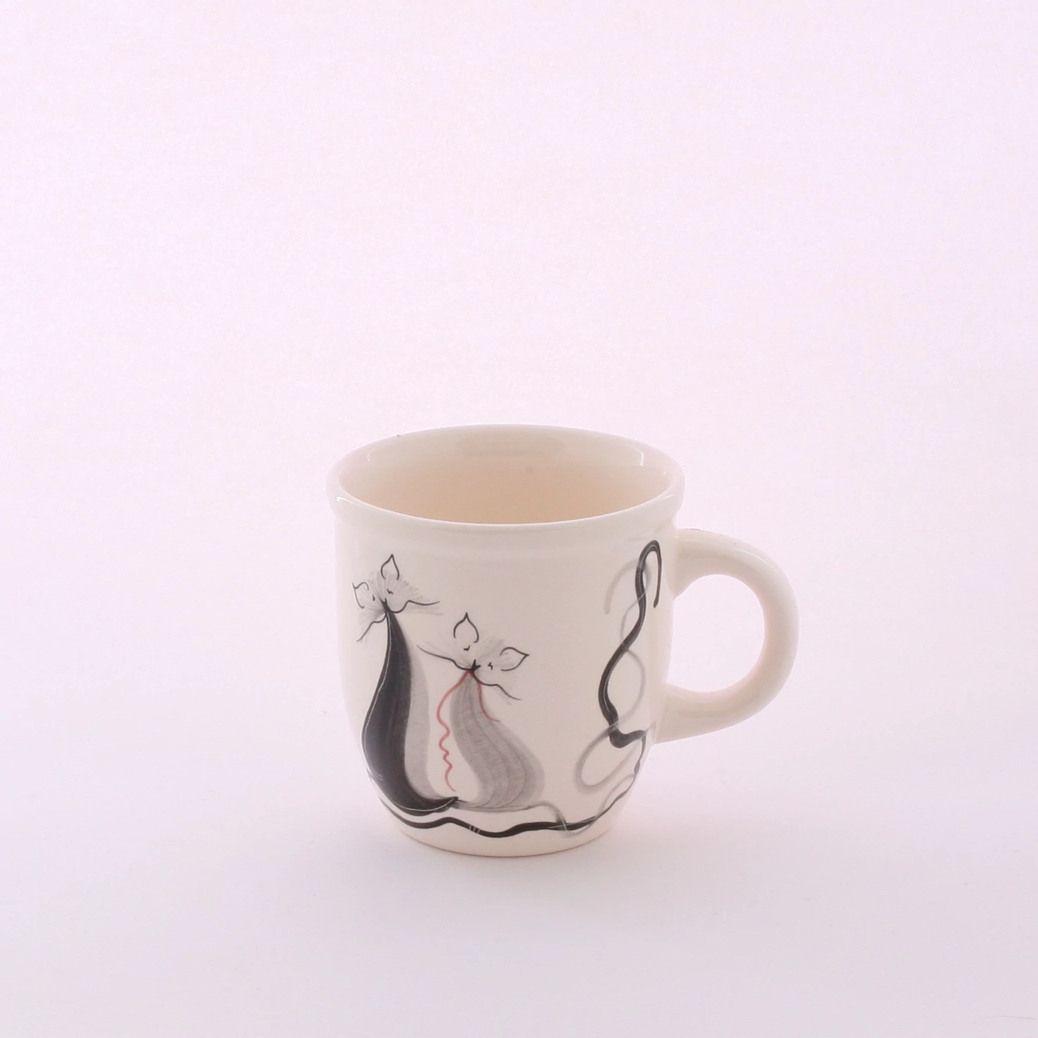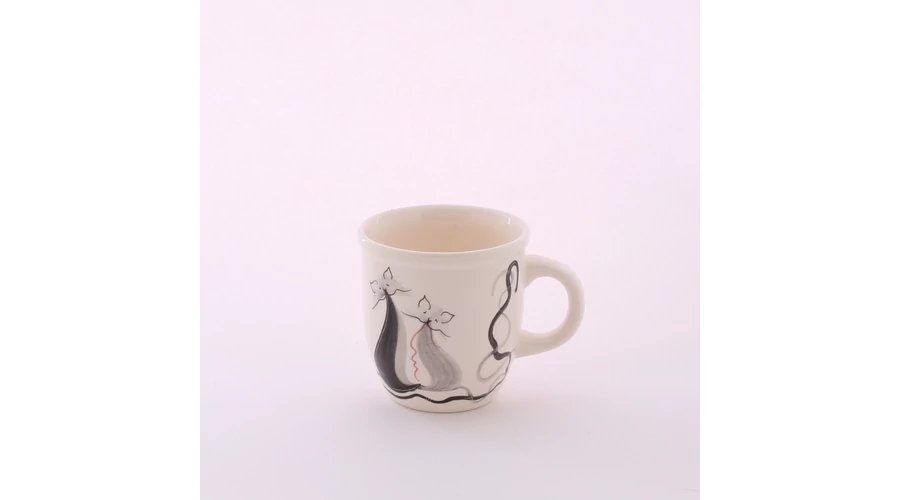 3 dl űrtartalmú kerámia bögre cicás mintával, 9,5 cm magas. Mikrohullámú sütőbe tehető, és mosogatógépben tisztítható, mindennapos használatra alkalmas. Készletben remek ajándék születésnapra, vagy nászajándékba. 6 darab felett most kedvezőbb áron.