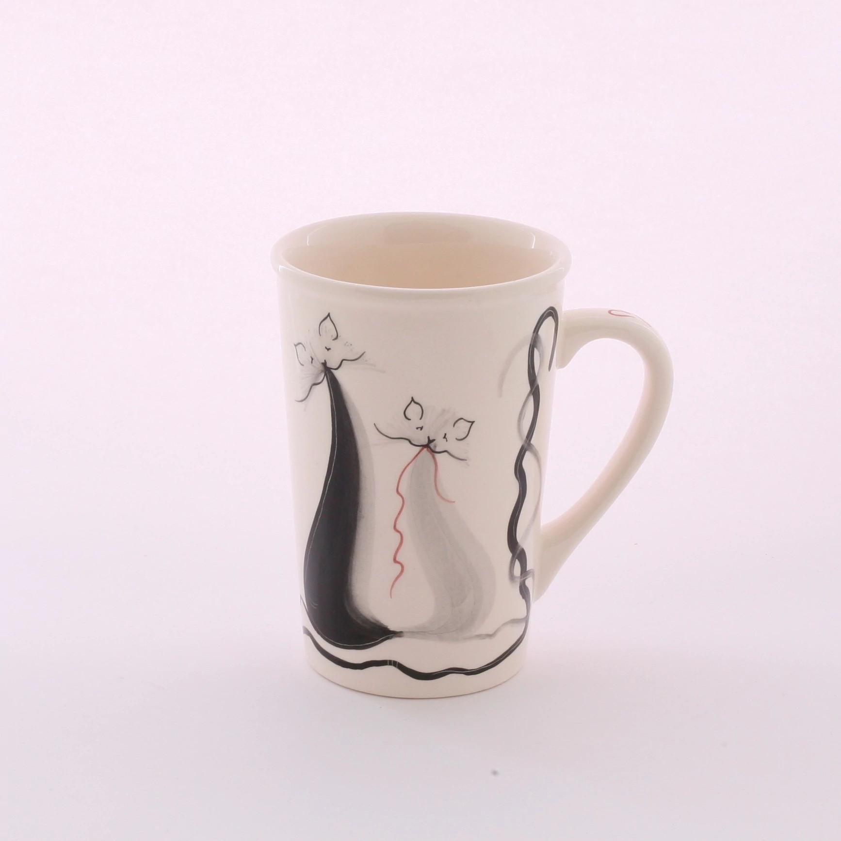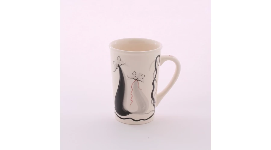 Újdonság webáruházunkban! 4 dl-es kerámia bögre, 13 cm magas. Kézzel festett cicás mintával. Mikrohullámú sütőbe tehető, és mosogatógépben tisztítható, mindennapos használatra alkalmas. Hat darabos rendelés felett most kedvezőbb áron lehet az Öné.