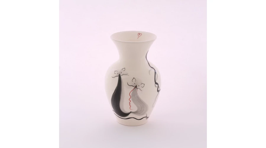 Újdonság webáruházunkban! Kézzel festett cicás mintájú kerámia váza, magassága 20 cm. Önállóan is kitűnő ajándék szeretteinek.