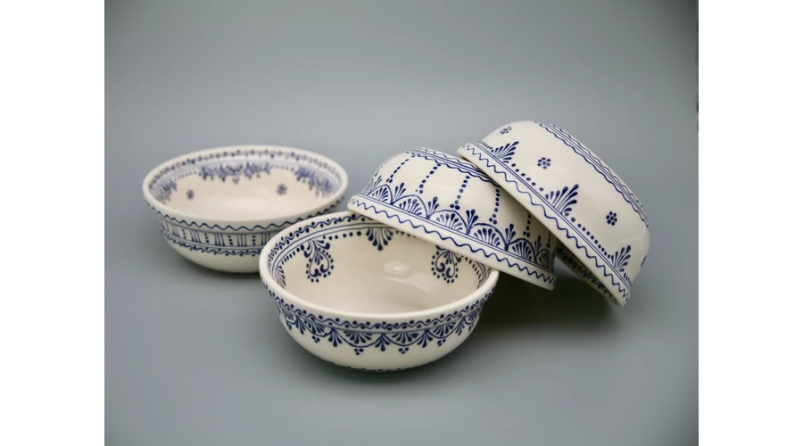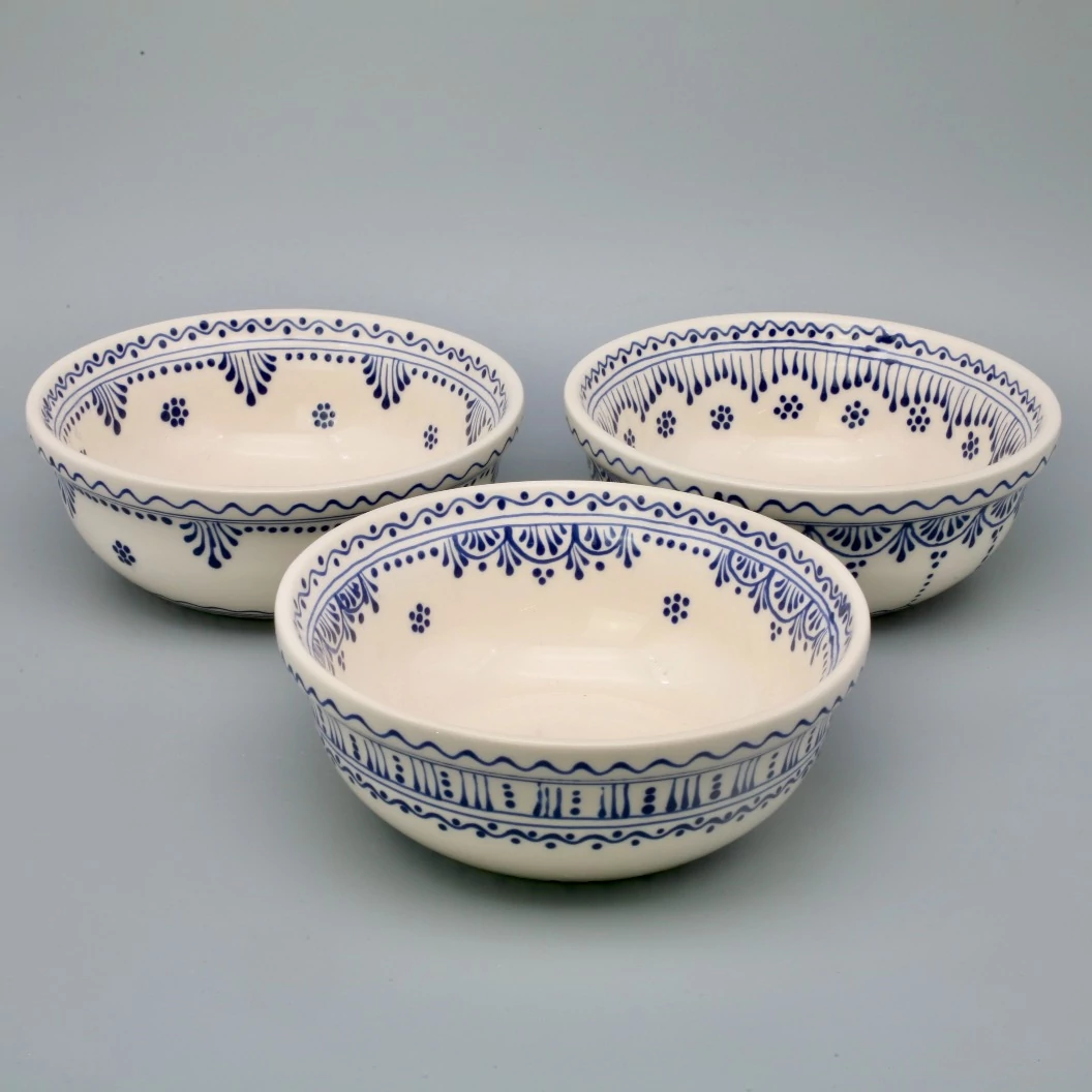 Kerámia tálka, kézzel festett irókás mintával. Átmérője 16 cm, magassága 6 cm. Mérete miatt használható leveses tányér helyett is. Hat darabtól kedvezőbb áron az Öné lehet. |