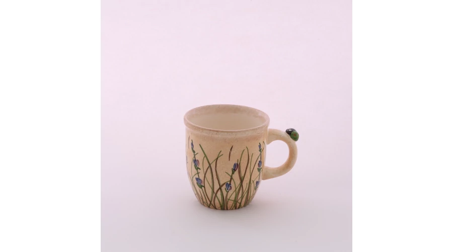 3 dl űrtartalmú kerámia bögre, kézzel festett levendulás mintával, 9,5 cm magas, a fülénél katicás ráttétel. Mikrohullámú sütőbe tehető, és mosogatógépben tisztítható, mindennapos használatra alkalmas. Készletben remek ajándék születésnapra, vagy nászajándékba.