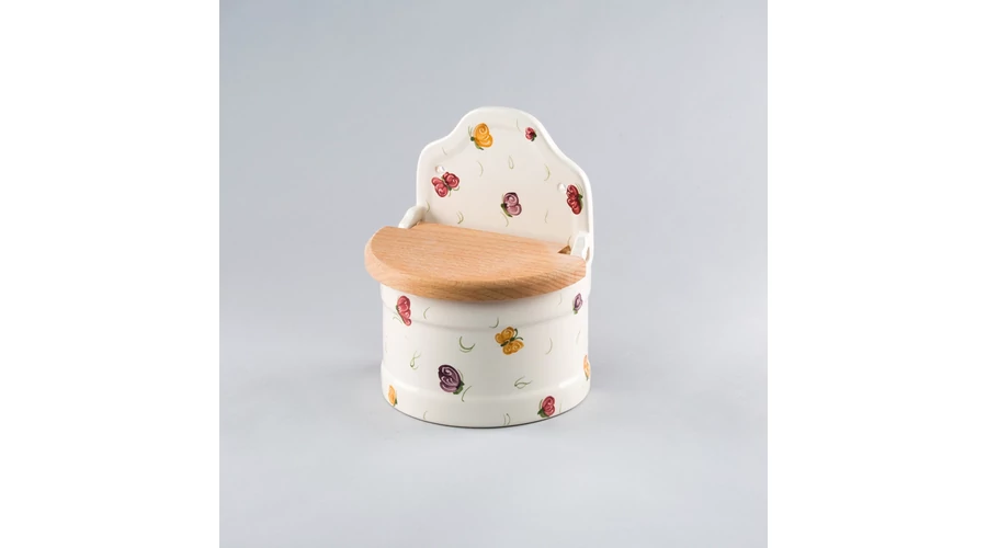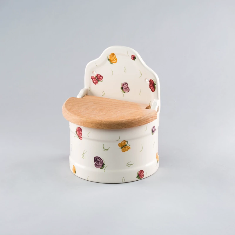 Kerámia sótartó, kb 0,5 kg fűszerhez, felhajtható bükkfa tetővel, régi időket idéző formával. Önállóan is nagyszerű ajándékötlet.