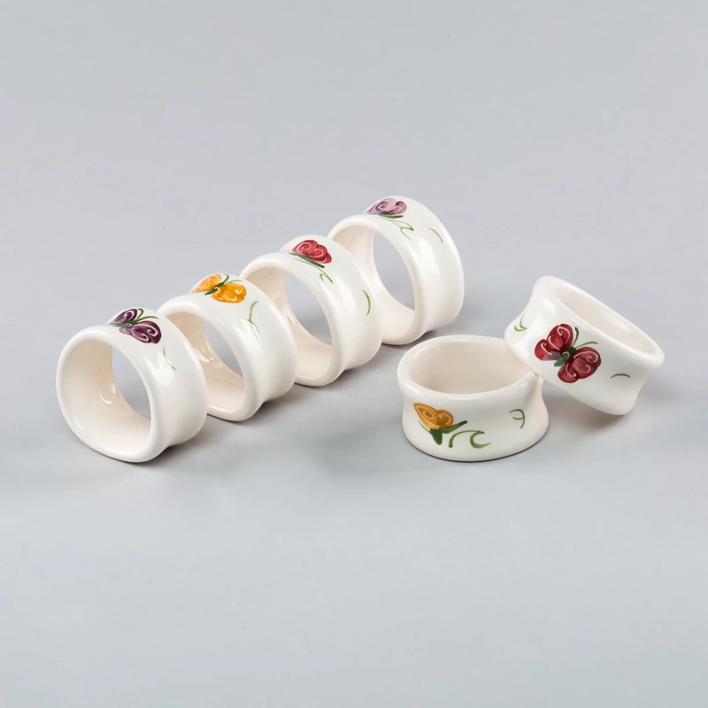 6 darabos kerámia szalvétagyűrű-készlet. Kézzel festett pillangós mintával. |