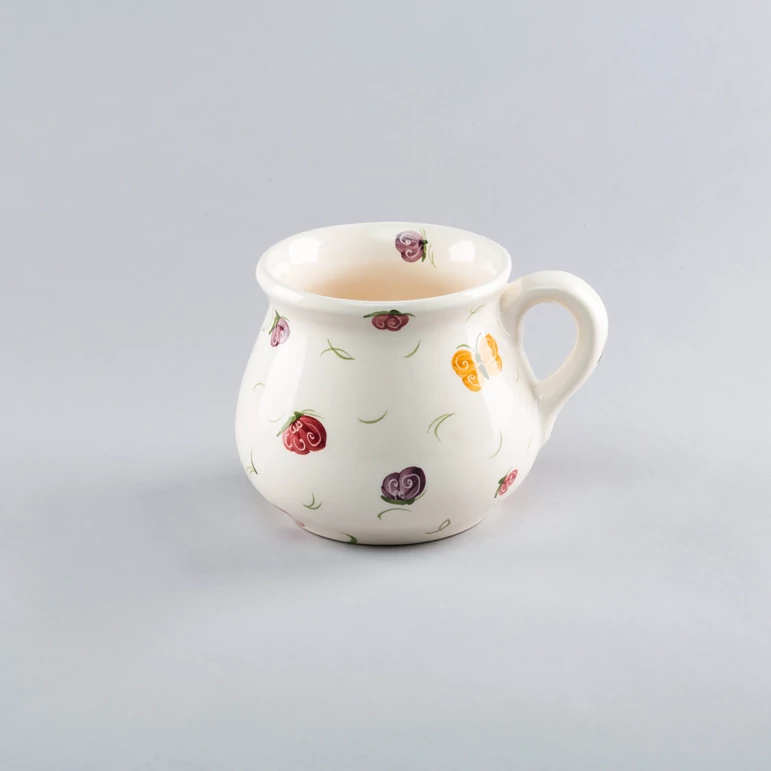 4 dl-es kerámia bögre, 10 cm magas. Kézzel festett pillangós mintával. Mikrohullámú sütőbe tehető, és mosogatógépben tisztítható, mindennapos használatra alkalmas. Hat darabos rendelés felett most kedvezőbb áron lehet az Öné. |