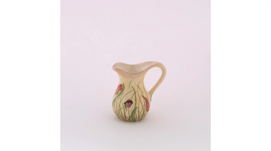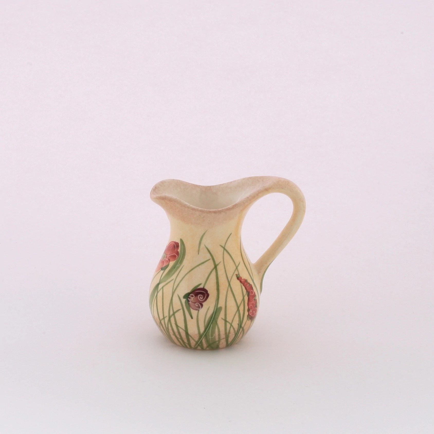 Pipacsos mintás kerámia tejkiöntő, kézzel festett, 1,5 dl űrtartalmú, magassága 10 cm. Praktikus kiegészítő teáskészletéhez. |