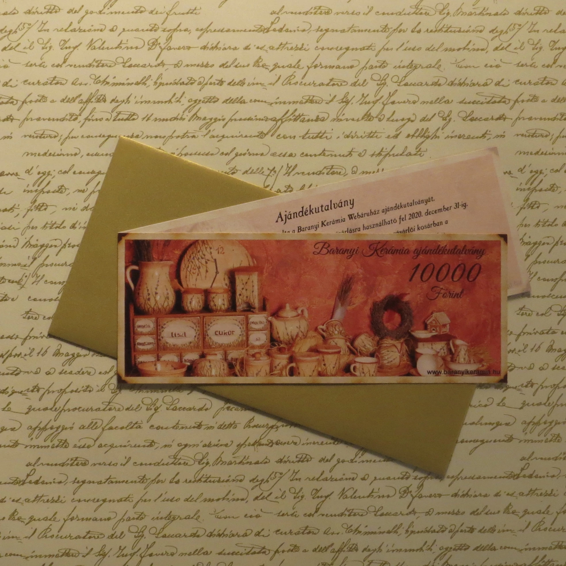 Az utalvány 5000, 10000, és 20000 forintos értékben választható, egyedi kóddal van ellátva, ha azt a megajándékozott a webáruházban történő vásárlás során a kosárban a kuponkód mezőben feltünteti, vásárlásának összegéből levonjuk az utalvány értékét. Az utalvány készpénzre nem váltható át, egy alkalommal egy összegben lehet felhasználni, az utalványon feltüntetett értéket meghaladó kosárértéknél váltható be. Az utalvány a www.baranyikeramia.hu oldalon használható fel a vásárlást követően egy évig.