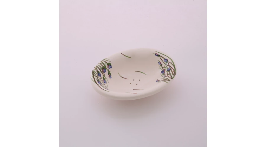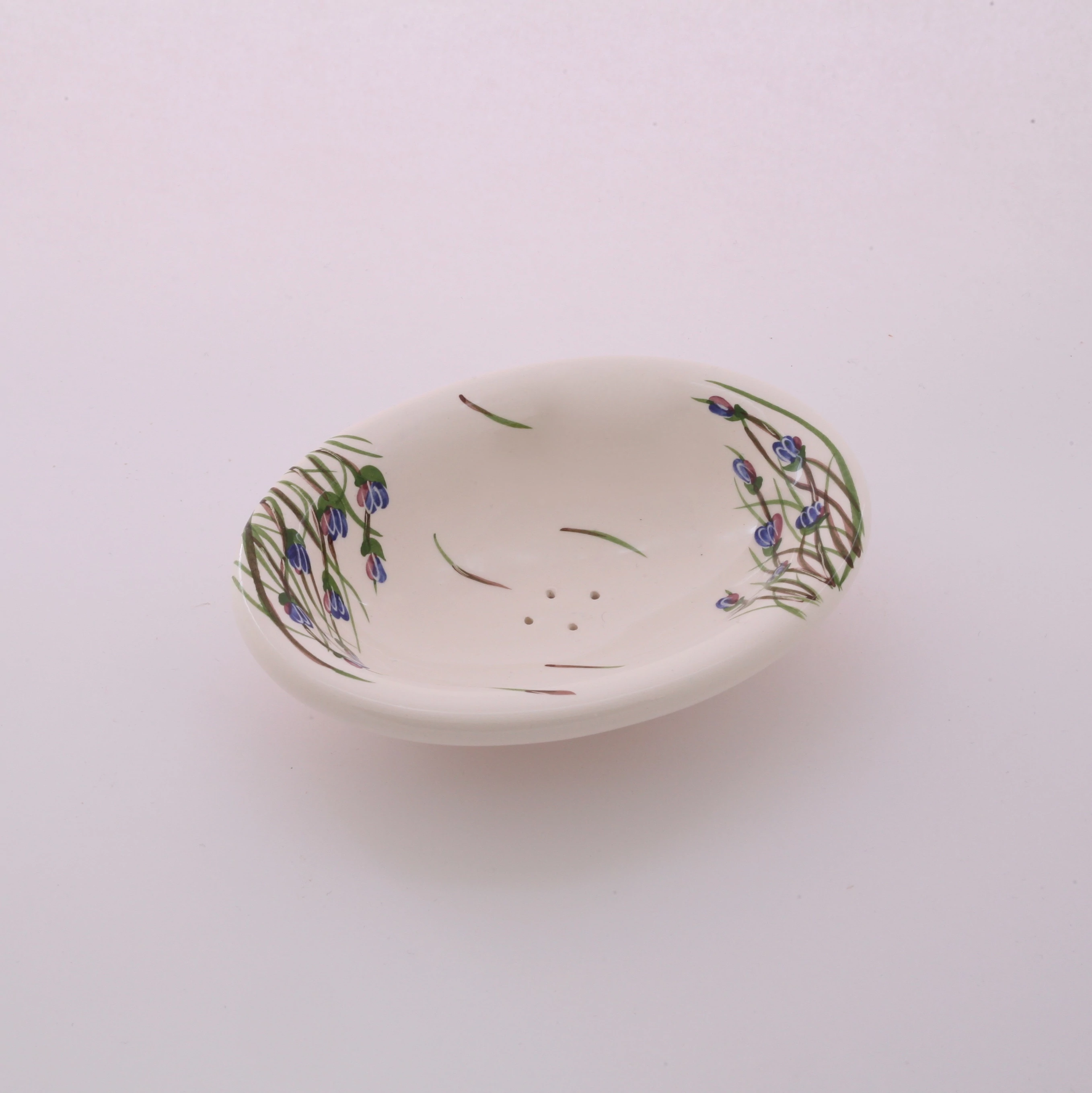 Ovális kerámia szappantartó, kézzel festett levendulás mintával. 13*11 cm méretű, kisebb méretű szappanokhoz. Most fehér alapszínnel is választható, hogy jobban illeszkedjen fürdőszobájába. |