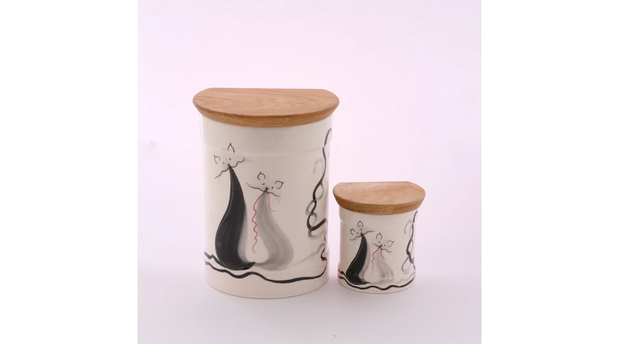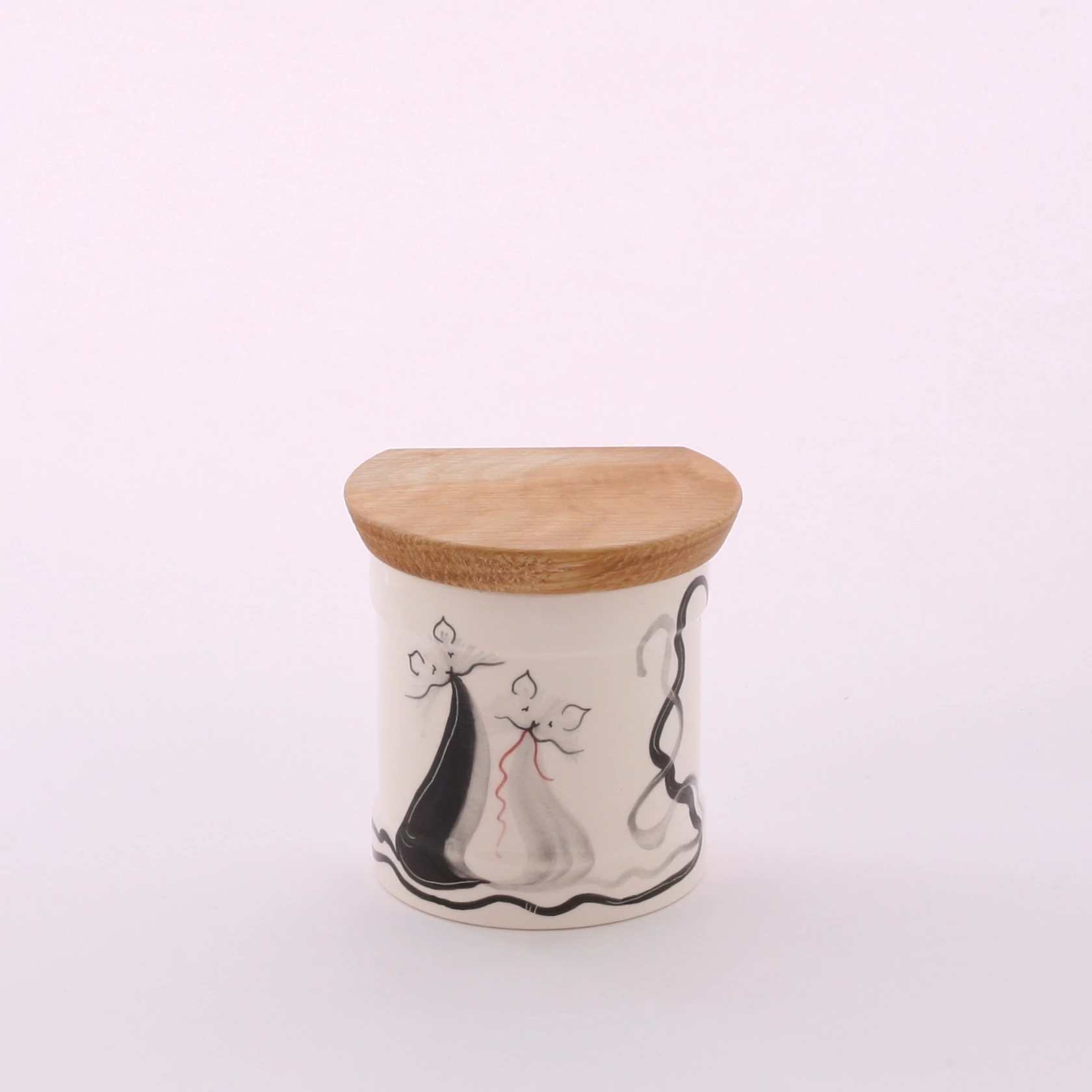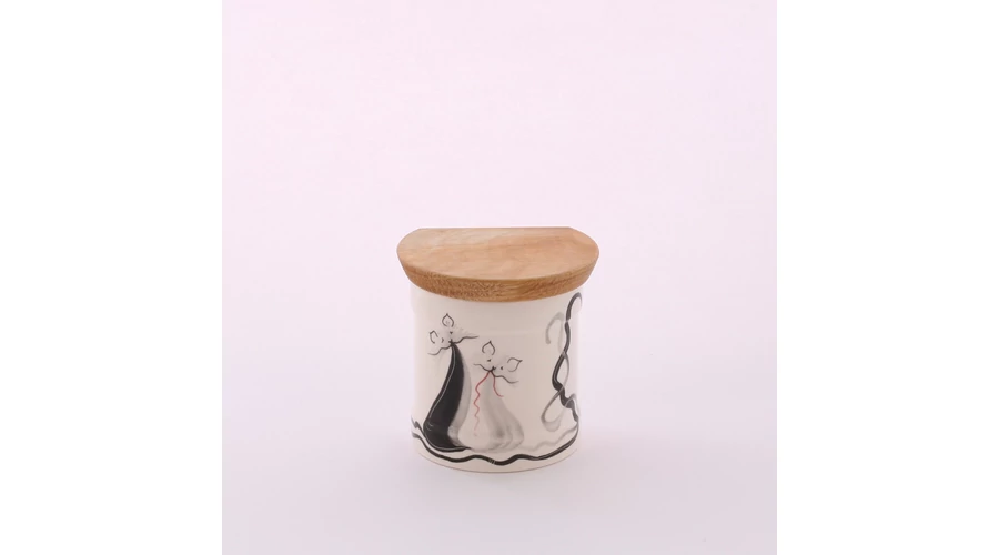 | Kerámia fűszeres edény, kb. 15 dkg fűszerhez, bükkfa tetővel. Kézzel festett cicás mintával. Rendelje meg kívánság szerinti feliratozással, a feliratokat a rendelés során a "Megjegyzés" rovatba tudja beírni. | |