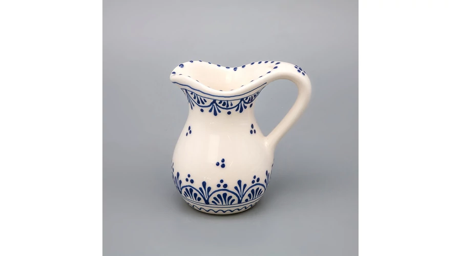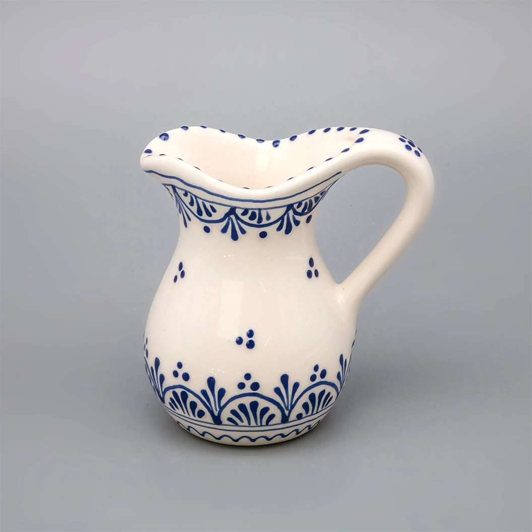 irókás mintás kerámia tejkiöntő, kézzel festett, 1,5 dl űrtartalmú, magassága 10 cm. Praktikus kiegészítő teáskészletéhez. |